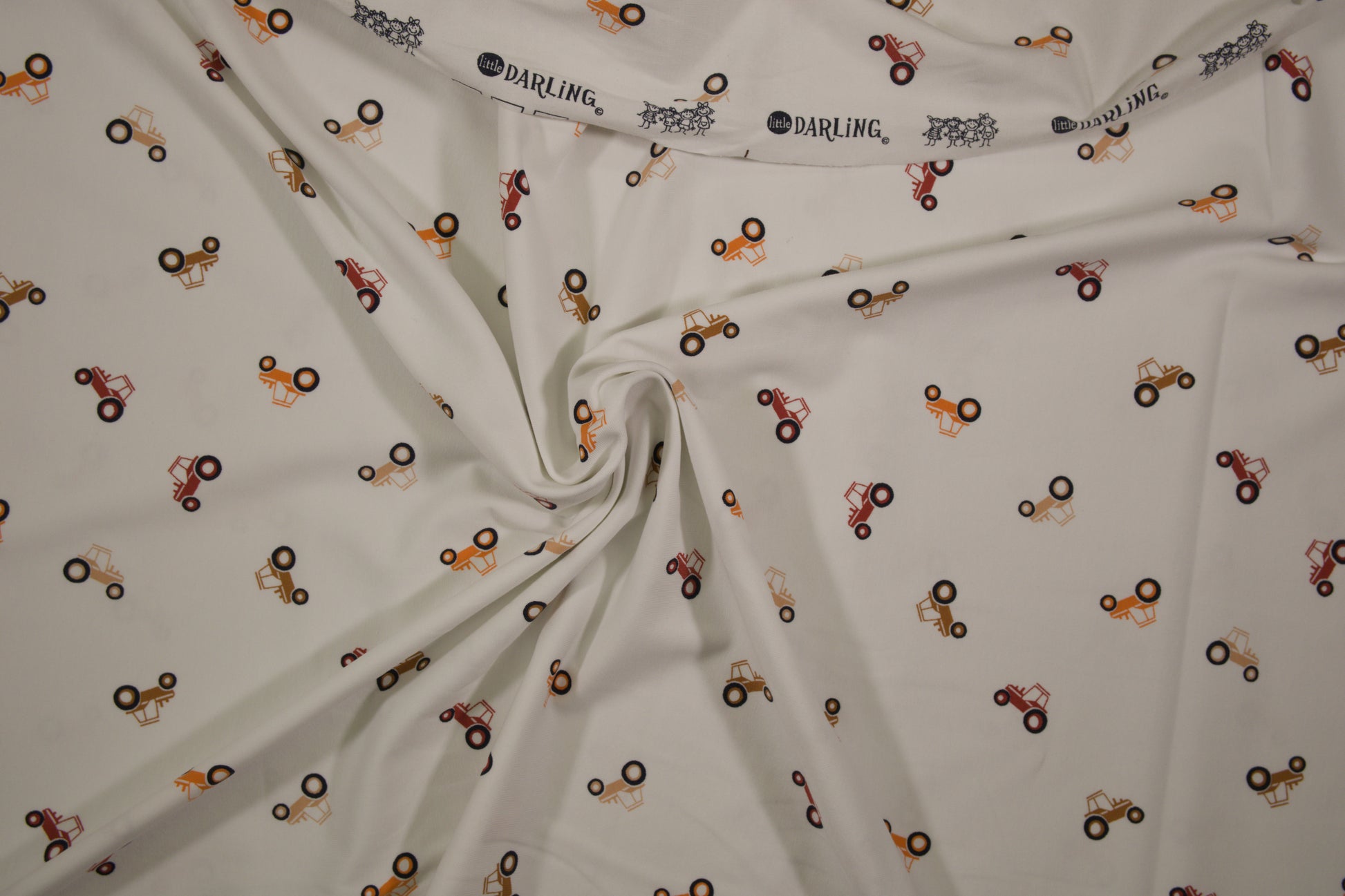 Dieser hochwertige Baumwolljersey mit verspieltem Traktorenmotiv ist die perfekte Wahl für kreative Nähprojekte rund um Kinder. Der Stoff überzeugt durch seine weiche, elastische Qualität und ist angenehm auf der Haut.